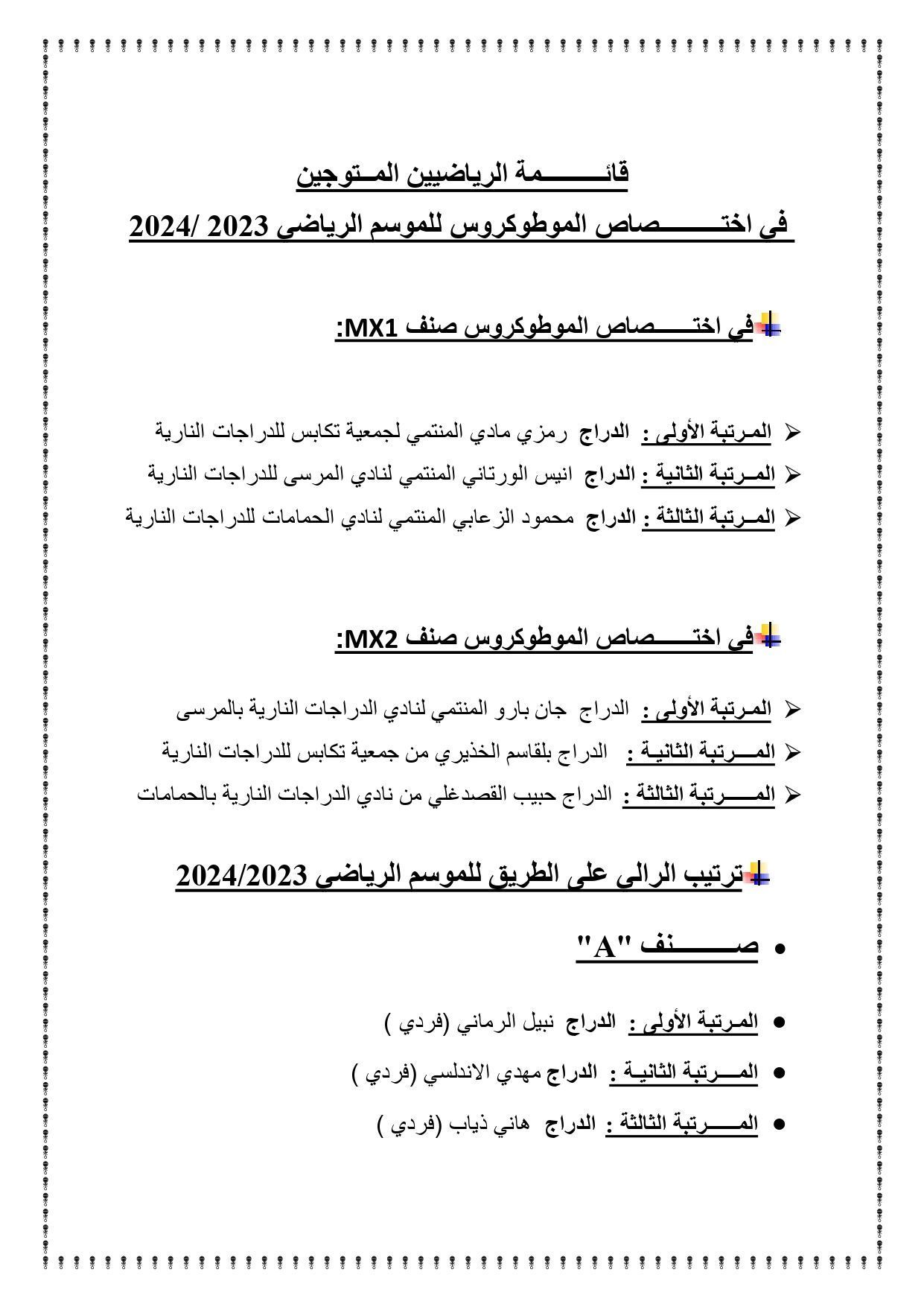 مــــــــــــوجه الي رؤساء الجمعيات و الأنـــــدية الرياضية و ممارسي رياضة الدراجات النارية