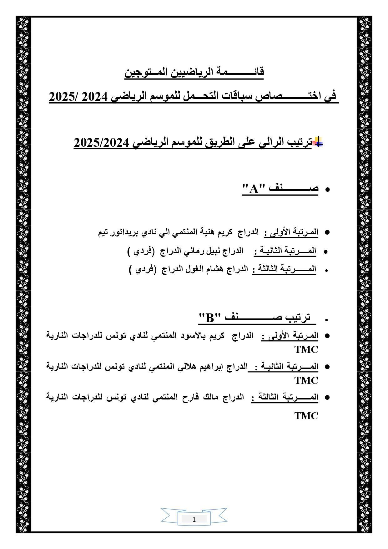 تعلم الجامعة التونسية للدراجات النارية و الأنشطة التابعة كافة مديري و مراقبي السباقات المجازين الراجعين لها بالنظر أنّه تقرر ما يلي :